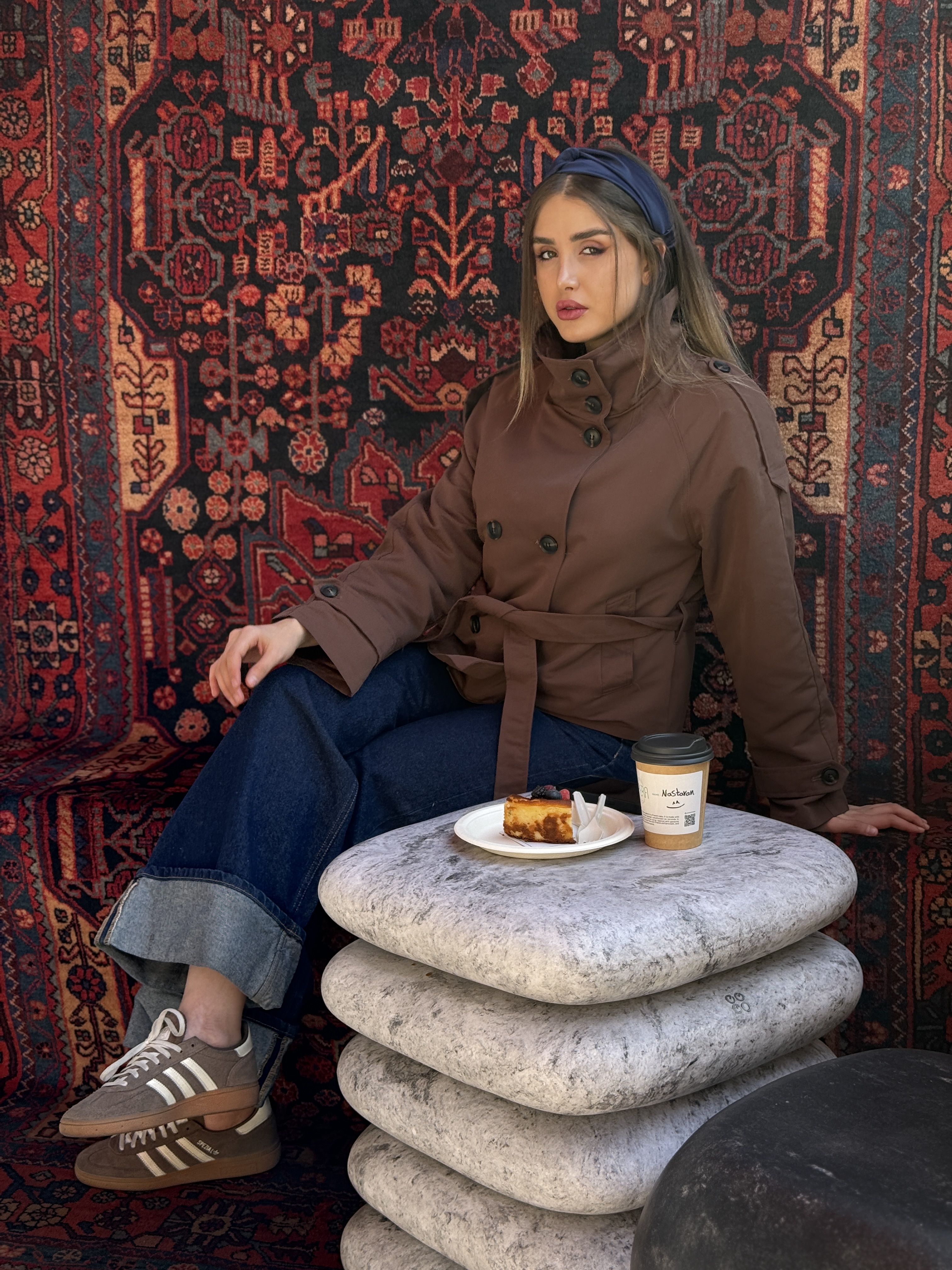 با این ترنچ کت زنانه شیک و خاص، استایلی متفاوت و مدرن بسازید که توجهها را جلب میکند. جنس شمعی این کت، آن را به گزینهای عالی برای فصول سرد و بارانی تبدیل کرده و در برابر رطوبت، محافظت مناسبی فراهم میکند. ویژگی برجسته این محصول، طراحی خاص یقه برشکایی است که با فرم آزاد و راحت کت، ترکیبی از سادگی و ظرافت بینظیر را ایجاد کرده. رنگ قهوهای گرم آن، بهراحتی با پالت رنگهای پاییزی و زمستانی هماهنگ میشود و جلوهای دلنشین به تیپ شما میبخشد. این بارانی زنانه، انتخابی بینقص برای خانمهایی است که به دنبال لباس ضد آب و باکیفیت با طراحی خاص هستند. با خرید ترنچ کت یقه برشکایی، یک آیتم کاربردی و مد روز به کمد خود اضافه کنید.
