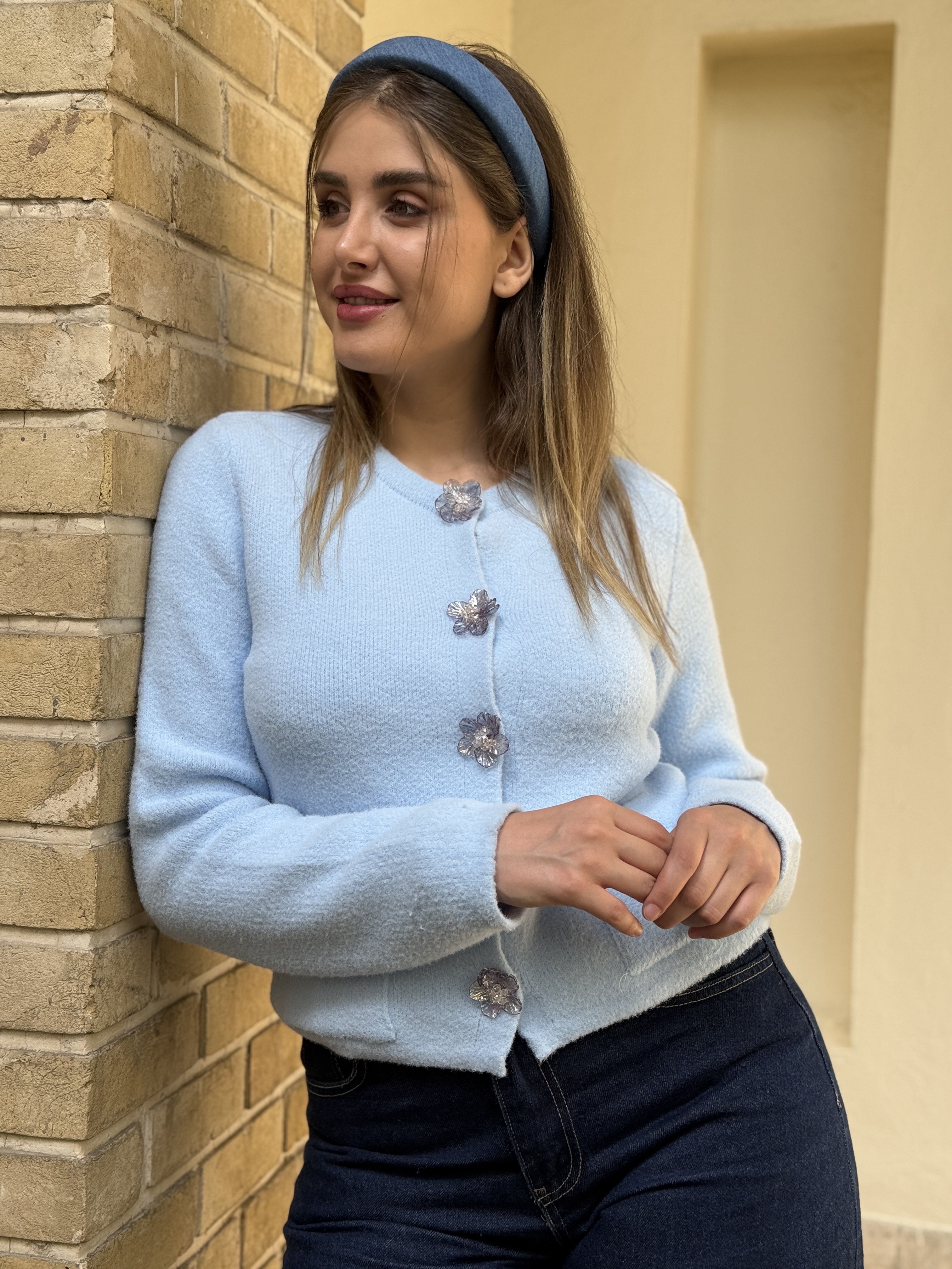 بافت زنانه دکمه‌ دار طرح جدید با دکمه کریستالی گلدار